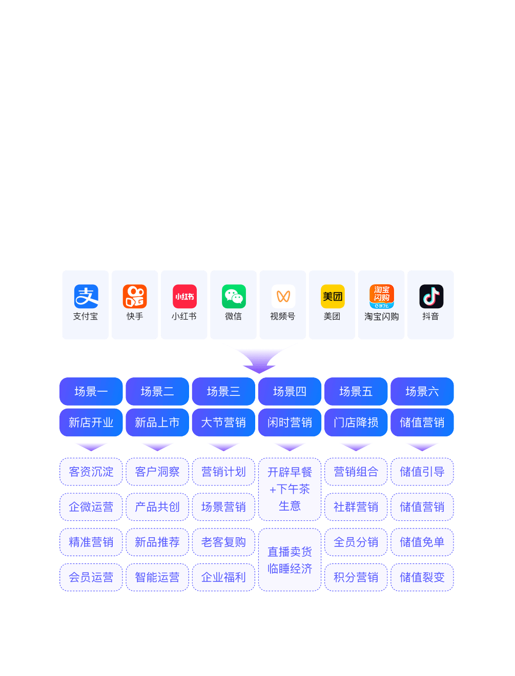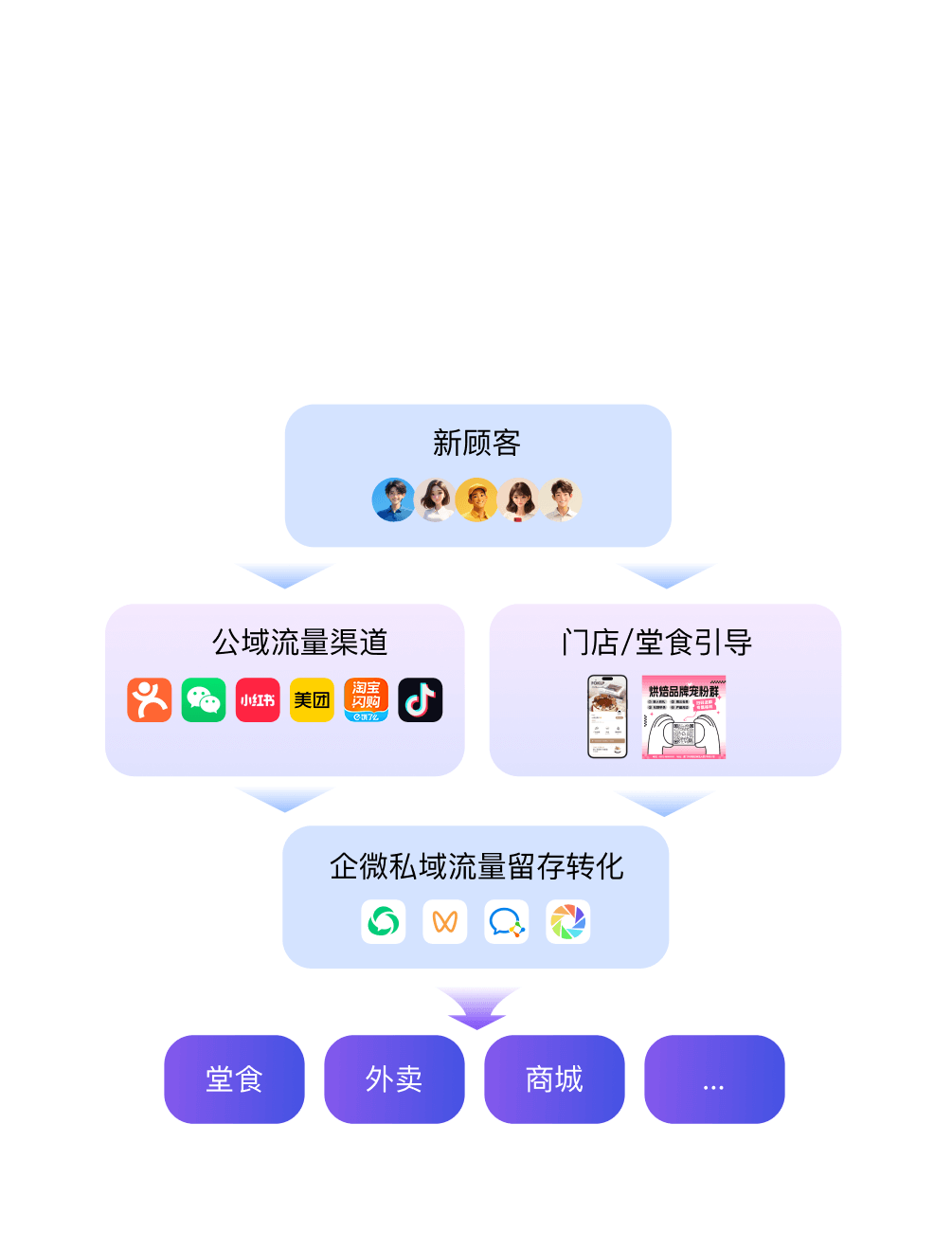 通过全域营销扩大品牌曝光,吸引潜在客户,并提供私域工具帮助商家沉淀客户,积累客户资产